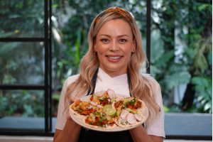 To serve; Form the tacos, place a hot corn tortilla on a plate, add pastor mushrooms, grilled pineapple, chopped onion and cilantro, creamy green sauce, and serve with lemon and radishes.